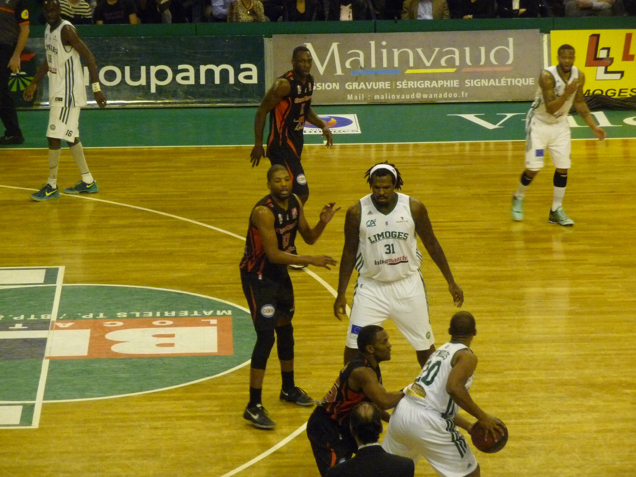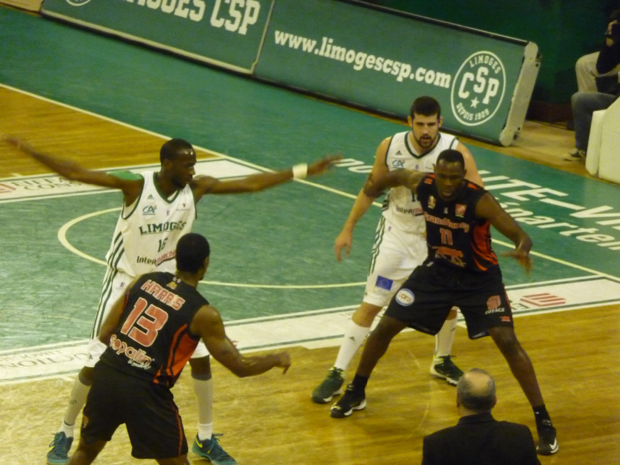 Les deux équipes resserrent les liens, et l’adresse s’en fait sentir. Deux acteurs surnagent toutefois: Harris d’un côté, et NBC de l’autre. On se rend coup pour coup. Les arbitres nous donnent pourtant nos chances sur la ligne des lancers (30 tentés en fin de match !), mais une maladresse déplorable nous fait mal (20 réussis en bout de course….). Malgré tout, on est toujours dans la course à mi-parcours (-1, 32-31). Pendant ce temps-là, l’ami Falker nous goba 11 rebonds sur ce premier acte. Limoges surnage mais est dans le dur.